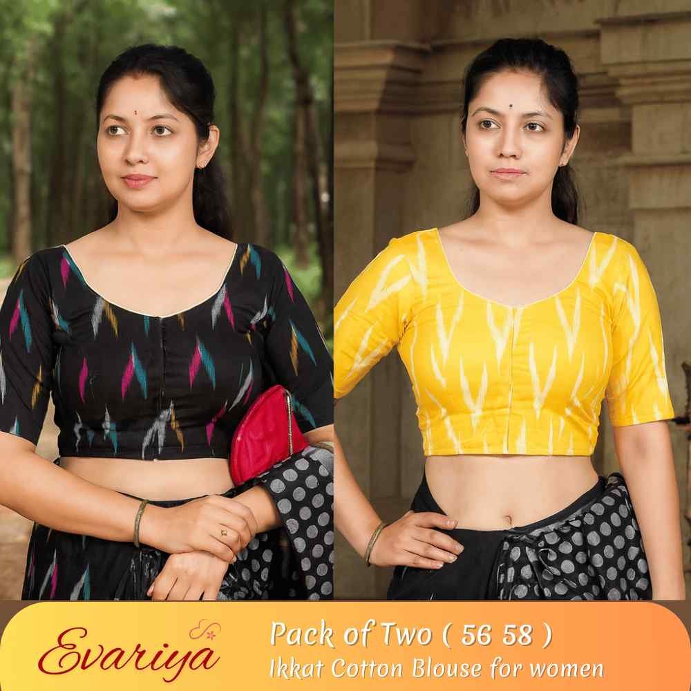 Evariya Women’s Ikkat Cotton Ready Made Saree Blouse – Pack of 2 | BLOU 056 058