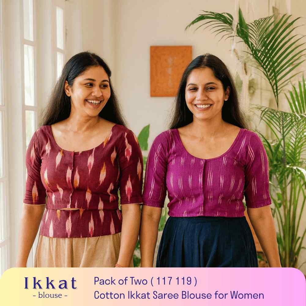 Riyashree Women’s Ikkat Cotton Ready Made Saree Blouse – Pack of 2 | BLOU 117 119