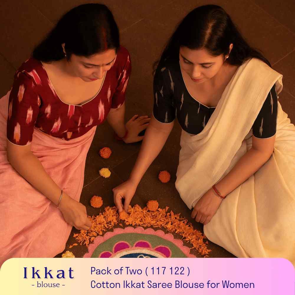 Riyashree Women’s Ikkat Cotton Ready Made Saree Blouse – Pack of 2 | BLOU 117 122