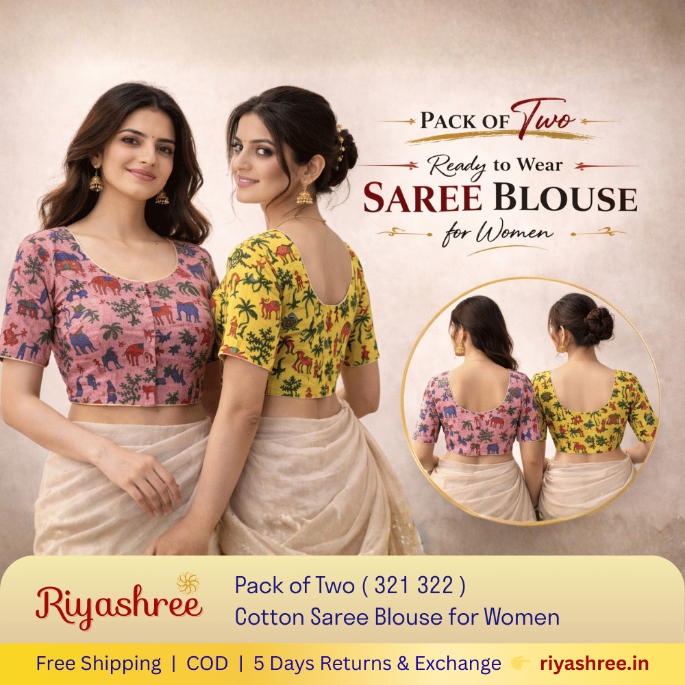Pack of Two Riyashree Ready to Wear Stitched Cotton Madhubani Saree Blouse for Women | 321 322